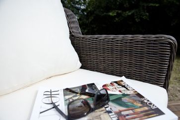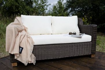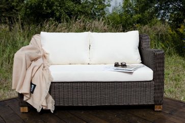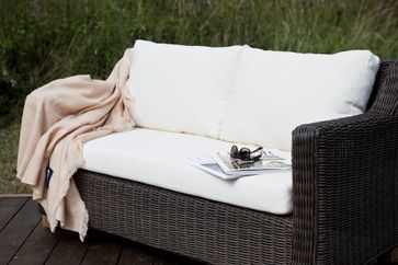 Подушки выполнены из водостойкой полиэфирной ткани для защиты мебели от дождя и солнца