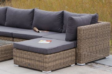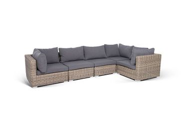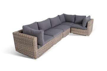 Диван Лунго состоит из модулей. Выполнен из круглого искусственного ротанга соломенного оттенка. Может быть размещен как на улице, так и в помещении. Достоинства данной модели: