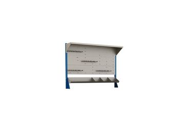 перфорированный экран, 4 держателя для ключей, 2 полки, для нижней полки предусмотрены разделители. Цвет экрана светло-серый шагрень (7038 RAL), цвет опор — синий (5015 RAL). Используемые материалы: сталь с полимерным покрытием None Есть доставка.