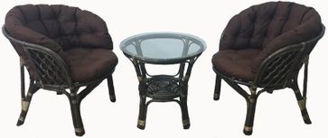Кофейный комплект Багама дабл (браун) состоит из двух кресел и столика. Размеры (ШхВхГ), мм: Кресло: 730х750х760 Столик: 600х560х600 Материал: ротанг подушки - ткань рогожка Цвет: браун Минимальная сумма заказа 1000 рублей. Возможен самовывоз.