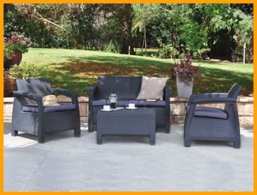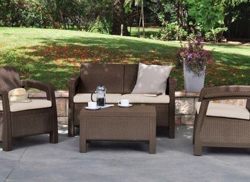 Комплект для отдыха Corfu box set сделан из высокопрочного пластика - 100% полипропилен. Мебель, изготовленная из этого материала обладает высокой устойчивостью к перепадам температуры и влаги, не выгорает на солнце. Оригинальный дизайн очень четко повторяет фактуру плетения. Комплект для отдыха Corfu box set состоит из одного 2-х местного дивана, двух кресел и столика-ящика для подушек. Материал - полипропилен Подушки: ткань Размеры (ШхВхГ), мм: Кресло - 750x790x700 Столик - 770x420x570 Диван - 1280x790x700 Цвет: коричневый, серый, белый Производство: Израиль Мебель поставляется в разобранном виде, в коробке. Минимальная сумма заказа 1000 рублей. Возможен самовывоз.
