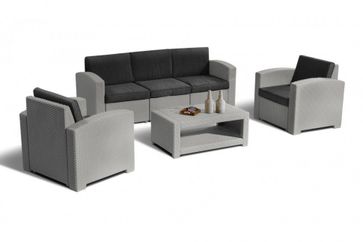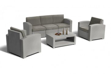 Комплект для отдыха IDEA Lux 5 светло-серый, рассчитанный на 5 персон состоит из 3-х местного дивана, двух кресел и кофейного столика. Изготовлен из высокопрочного, стойкого к ультрафиолету и нагрузкам, пластика, имитирующего плетение из ротанга. Данная мебель изготавливается без металлокаркаса, поэтому более легкая и устойчива к коррозии. Подушки на сидения и спинки в комплекте, количество 8 шт. В подушках используется долговечный наполнитель увеличенной толщины. Материал: Комплект: полипропилен Подушки: ткань Размеры (ШхВхГ), мм: диван: 1990x750x710 кресло: 830х750х710 стол: 930x385x560 Максимальная нагрузка: диван - 420 кг кресло - 140 кг Вес комплекта: 70 кг Возможные цвета: Комплект: светло-серый Подушки: серо-бежевый, темно-серый Мебель поставляется в разобранном виде, 2-х коробках. Размеры упаковок (ШхВхГ), мм: 1 коробка: 960х770х660 2 коробка: 850х790х740 Минимальная сумма заказа 1000 рублей. Возможен самовывоз.