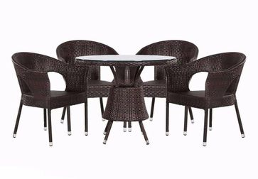 Комплект MK-3601-BRСтол MK-3610-BR Размеры стола: 900х900х760 ммКресло MK-3611-BR: 4 шт.Размеры кресла: 590х620х780 ммЦвет: коричневыйМатериал: Искусственный ротанг Минимальная сумма заказа 1000 рублей. Возможен самовывоз.