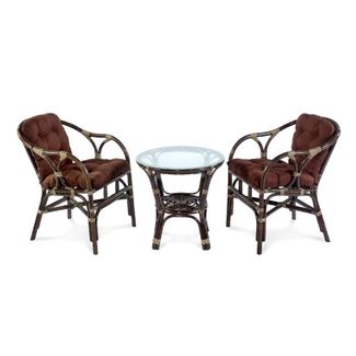 Комплект для двоих Terrace – наше самое выгодное предложение! Комплект очень компактный и идеально подходит для небольших помещений (балконы, коридоры и др.). Состав комплекта: – кофейный столик 1 шт. – кресла 2 шт. В комплектацию входят мягкие подушки на сиденье и спинку из ткани твил. Стекло толщиной 5 мм крепится на силиконовые присоски. Комплект поставляется только в темно-коричневом цвете. None Возможен самовывоз. Есть доставка.