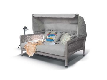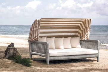 Подушки выполнены из водостойкой полиэфирной ткани для защиты мебели от дождя и солнца