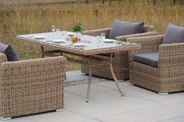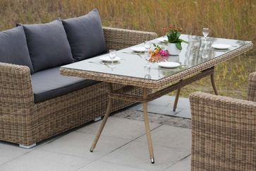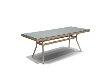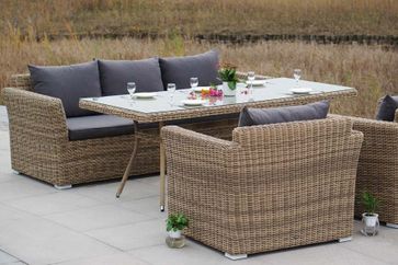 Комплект выполнен на алюминиевом каркасе в комбинации с круглым плетением из искусственного ротанга серо-жёлтого цвета, продается как комплектом, так и раздельно, разработано дизайнерской группой «4SiS», Италия.В комплект мебели входит 1 стол большой «Латте», 2 кресла «Капучино» и 1 диван трехместный «Капучино».- размеры стола (ШхГхВ): 200х90х75 см., стеклянная столешница 5 мм.- размеры кресла (ШхГхВ): 105х85х81 см., подушки в комплекте