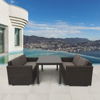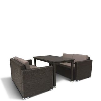 Стoл: L1400хW800xH740 мм Стекло: закаленное - 6 мм, стекло сверху, цвет - бронза Диван: W1480xD760xH740 мм (2 шт) Каркас: труба сталь D25 Материал: искусственный ротанг. Подушки в комплекте Цвет: Brown Объем и вес комплекта: 1,4 м3, 103 кг Минимальная сумма заказа 1000 рублей. Возможен самовывоз.