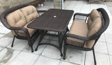 Диван: W142xD82xH92 см. (2шт) Стол: L140x80xH74 см. Каркас: Сталь Материал: искусственный ротанг. Цвет ротанга : Brown Подушки в комплекте. Минимальная сумма заказа 1000 рублей. Возможен самовывоз.