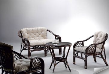Комплект "Starwart" МК-6111-BR износостойкий и удобный. Изготовлен из натурального ротанга. Прекрасно впишется в любой интерьер или расположится в саду. В стоимость вошли: Два одноместных кресла "Starwart" с подушкой Софа двухместная "Sratwart" с подушками Кофейный столик "Starwart" со стеклянной столешницей Размеры: Кресло: глубина-710 мм, ширина-650 мм , высота-780 мм Софа: глубина-710 мм, ширина-1140 мм , высота-780 мм Столик: глубина-600 мм, ширина-600 мм , высота-510 мм Материал: натуральный ротанг