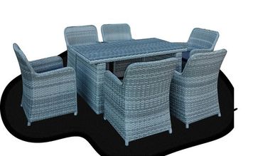 Комплект из искусственного ротанга Тьемонт состоит из стола прямоугольной формы и 6-и кресел. Стол со стеклом. Подушки на кресла в комплекте. Размеры кресла ШхВхГ (мм): 650х900х500 Размеры стола ДхВхШ (мм): 1500х750х800 Возможные цвета: серый Минимальная сумма заказа 1000 рублей. Возможен самовывоз.
