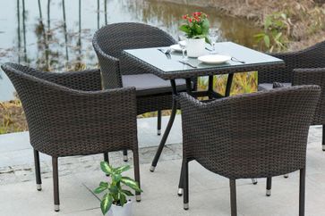 Подушки выполнены из водостойкой полиэфирной ткани для защиты мебели от дождя и солнца
