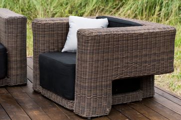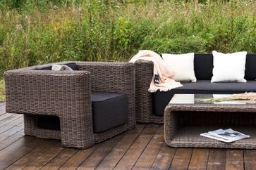Подушки выполнены из водостойкой полиэфирной ткани для защиты мебели от дождя и солнца