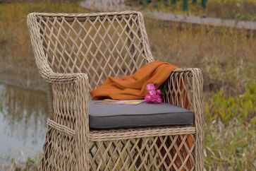 Подушки выполнены из водостойкой полиэфирной ткани для защиты мебели от дождя и солнца