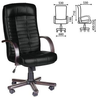 Кресло офисное Атлант-экстра, кожа, дерево (орех D-08), монолитный каркас, черное К-01