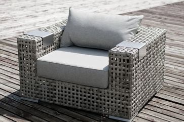 Подушки выполнены из водостойкой полиэфирной ткани для защиты мебели от дождя и солнца