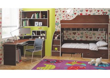 •Кровать двухъярусная •Лестница: да •Ортопедическое основание: нет •Ящик для белья: да, 1шт. в комплекте •Матрас: докупается отдельно •Стол и навесная полка докупаются отдельно None Есть доставка.