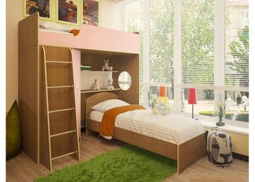 Кровать двухъярусная Орбита-3 состоит из кровати-чердака со шкафом, олкой для книг и столом и односпальной кровати. Нижнеярусная кровать имеет ортопедическое основание в виде гнутых ламелей (толщина ламелей 7 мм.)