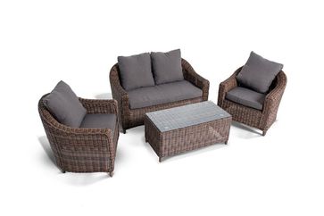 В комплект лаунж зоны Кон Панна входит один двухместный диван, два кресла, журнальный столик и подушки.