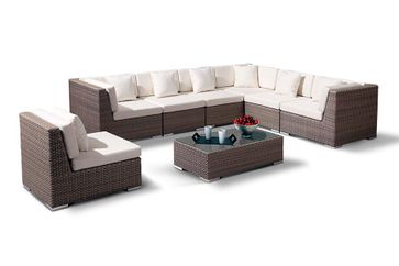 Модульный угловой диван выполнен на алюминиевом каркасе в комбинации с плоским плетением из искусственного ротанга серо-коричневого цвета, продается как комплектом, так и раздельно, разработано дизайнерской группой «4SiS», Италия.- в комплект мебели входит: 3 угловых модуля, 4 прямых модуля и 1 столик, подушки в комплекте.- размеры углового модуля: 90x90x73 см.- размеры прямого модуля: 70x90x73 см.- размеры столика: 110х60х32 см. None Возможен самовывоз. Есть доставка.