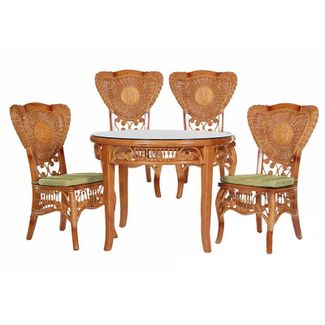 Стол MK-3415 Размер : 1100х1100х750 мм Стул MK-3416: 4 шт. Размер : 640х510х990 мм Цвет: медовый дуб Материал: ротанг натуральный Минимальная сумма заказа 1000 рублей. Возможен самовывоз.