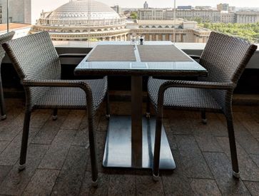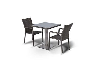 Материал: Искусственный ротанг Каркас: Алюминий Цвет: серо-коричневый Размер стола ШхГхВ: 700х700х750 мм