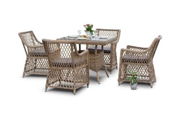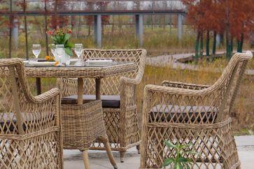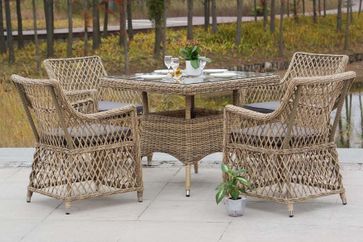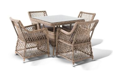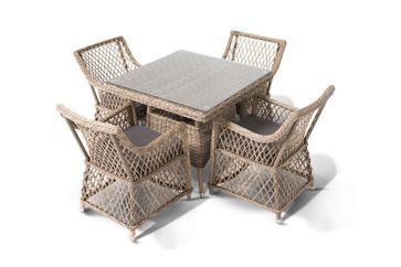 В комплект обеденной группы входит один обеденный стол, четыре стула и подушки.