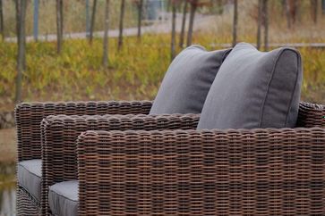 Подушки выполнены из водостойкой полиэфирной ткани для защиты мебели от дождя и солнца