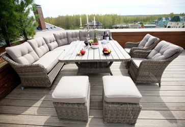 - Обеденный комплект из искусственного ротанга Сорренто по выгодной цене 180 000 р. руб.;