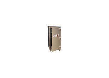 Корпус и дверь огнестойкого сейфа состоят из двух сваренных между собой стенок, пространство между которыми заполнено огнеупорным бетоном. Дверь со сложным трехступенчатым профилем повторяет "ступеньки" передней панели, обеспечивая тем самым максимальное прилегание и защищая содержимое от пламени и продуктов горения. Сейф оснащается ручкой и колесиками. Внутри сейфа находится встроенный пластмассовый лоток и одна перемещаемая по высоте полка. Ключевой замок и кодовый электронный (работают только вместе) Сейф имеет также мастер-ключ, что позволяет иметь доступ к сейфу в случае утраты кода или повреждения замка. Замок блокируется на 5 минут в случае трехкратного неверного набора кода. Электронный замок позволяет при желании устанавливать функцию задержки открывания или блокировки клавиатуры от 1 до 10 минут, что актуально для неохраняемых помещений. Предусмотрена блокировка ригельного механизма при попытке высверливания точек крепления замка к корпусу. Сейфы покрыты порошковой эмалью. Цвет - два оттенка мокрого асфальта. Конструкция не предусматривает крепление к полу или к стене. При необходимости, сейф возможно закрепить анкерными болтами к капитальной стене, предварительно просверлив заднюю панель и заложив соответствующие втулки в корпус. None
