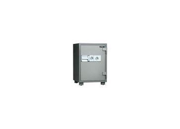 Safeguard SD-104K - сертифицированный пожаростойкий сейф от южнокорейского производителя, предназначенный для хранения и защиты от пожара денег, документов и ценных бумаг. Подходит не только для домашнего использования, но и для оборудования офисных кабинетов. Сейф SD-104 прошел серию испытаний в соответствии с международными стандартами, что подтверждают сертификаты на огнестойкость: ГОСТ Р 50862-2005 (Россия), NT Fire017 (Швеция), UL (США), JIS–1037 (Япония), KSG 4500 (Юж.Корея). В соответствии с российским ГОСТ Р 50862-2005 изделию присвоен класс огнестойкости 60Б, что свидетельствует о способности обеспечить сохранность бумаг внутри сейфа в течение часа в условиях пожара. Стальной корпус сейфа Safeguard SD-104K - с двойными стенками, межстеночное пространство заполнено огнеупорным материалом (пенобетоном). Сложный трехступенчатый профиль двери, в точности соответствующий "ступенькам" передней панели корпуса, обеспечивает плотный притвор, который препятствует проникновению во внутрь пламени и продуктов горения. Дверь оборудована двумя замками: кодовым механическим и ключевым, причем первый является блокирующим, а второй - приводит в движение ригельный механизм. Такая удачная комбинация замков позволяет в течение рабочего дня пользоваться одним ключевым замком при набранном коде. Встроенный защитный механизм блокировки ригелей приводится в действие при попытках высверливания, либо выбивания замка. Конструкция кодового замка не предусматривает возможность смены кода - используется комбинация предустановленная на заводе-производителе. Внутреннее пространство сейфа Safeguard SD-104K оборудовано выдвижным лотком и двумя полками, все элементы интерьера являются съемными. Днище оборудовано колесиками для комфортного перемещения этого увесистого сейфа в пределах помещения. Конструкция не предусматривает возможность крепления изделия к стене или полу. Поверхность корпуса имеет износоустойчивое покрытие на основе порошковой эмали. Цветовое исполнение - два оттенка "мокрый