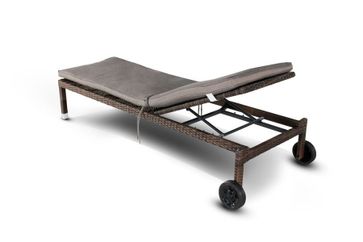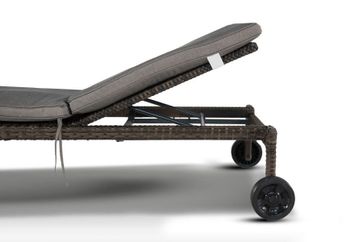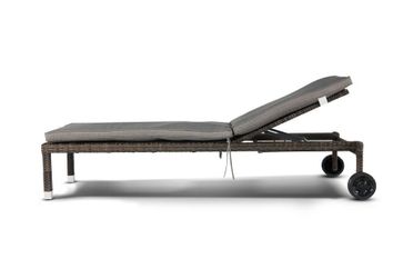 Легкий и раскладной шезлонг Пиза из искусственного ротанга оснащен колесами для более удобного передвижения. Удобный матрац и регулировка наклона спинки шезлонга создают самые комфортные условия для отдыха. Каркас выполнен из высокопрочного алюминия, что гарантирует продолжительный срок службы. У спинки шезлонга 4 уровня наклона, а также он может раскладываться до ровной плоскости. Шезлонг выдерживает до 100 кг.