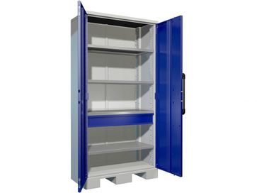 Внешние размеры (ВхШхГ) — 1850 x 920 x 460 мм Ключевой замок Количество ящиков — 1 Количество полок — 4 Вес — 110 кг None Возможен самовывоз. Есть доставка.