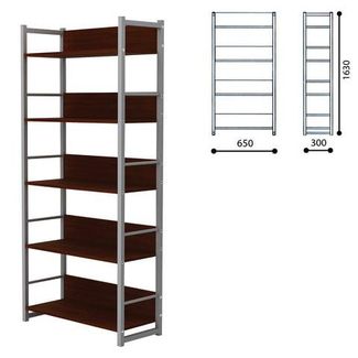 Стеллаж на металлокаркасе, 1630х650х300 мм, серый каркас, 5 полок ЛДСП орех, Д-343