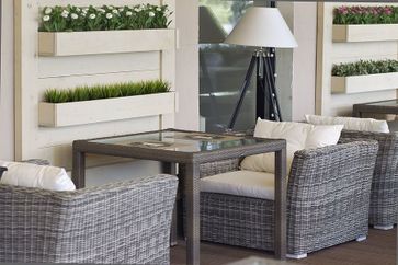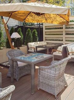 Материал: Искусственный ротанг Каркас: Алюминий Цвет: серо-коричневый Размеры ШхГхВ: 900х900х750 мм Минимальная сумма заказа 1000 рублей. Возможен самовывоз.