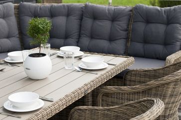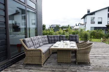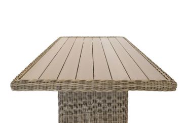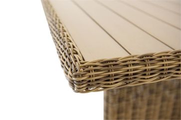 Обеденный стол Бергамо из искусственного ротанга, который прекрасно сочетается с трансформирующейся мягкой зоной Бергамо. Стол переплетен искусственным ротангом, известным своей долговечностью. Фактура столешницы выполнена под дерево (ДПК), с торца оплетена искусственным ротангом и легка в эксплуатации. Стол Бергамо - гармоничное сочетание природы, современного стиля и практичности. В солнечных лучах плетение приобретает более светлый и яркий оттенок.