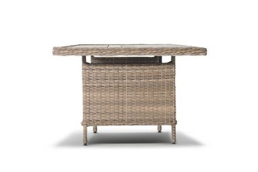 Стол Цесена соломенный изготовлен из высококачественного и неприхотливого искусственного ротанга соломенного оттенка. Подстолье украшает плоское плетение, а столешницу - круглое, благодаря чему стол отличается индивидуальностью. Подходит для размещения как на улице, так и в доме. Достоинства данной модели: