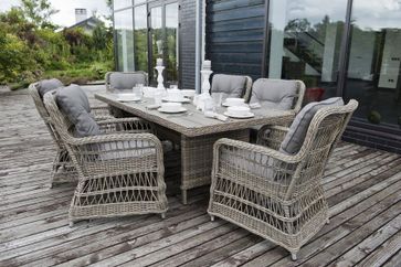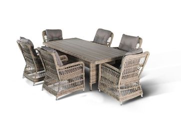 - Столешница обеденного стола изготовлена из древесно-полимерного композита (поливуда) с полностью аутентичным древесным рисунком, текстурой и цветом.