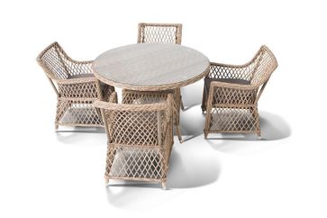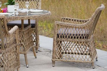 В комплект обеденной группы входит один обеденный стол, четыре стула и подушки.