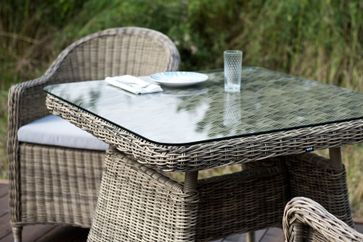 Столешница обеденного стола изготовлена из крепкого закалённого стекла толщиной 5 мм
