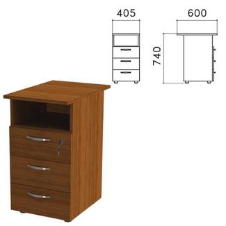 Тумба приставная "Эко", 405х600х740 мм, 3 ящика, полка, замок, орех, 402787-19