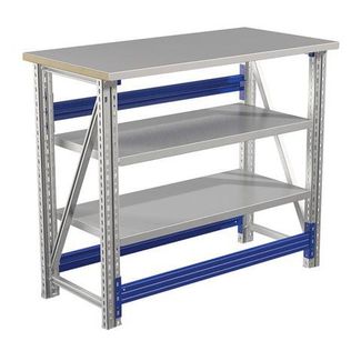 Закажите Верстак металлический ПРАКТИК Master №106, 900х1000х500 мм, столешница сталь, полки у компании Офис-Р в Москве на портале Alloy: