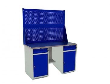Высота рабочей поверхности — 870 мм Ширина столешницы — 1400 мм Глубина столешницы — 700 мм Кол-во полок — 4 Кол-во ящиков — 2 Макс. нагрузка — 1000 кг Вес — 80 кг Цена указана за верстак с экраном и освещением Цену можно снизить, выбрав комплект без аксессуаров None Возможен самовывоз. Есть доставка.