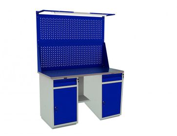 Высота рабочей поверхности — 870 мм Ширина столешницы — 1400 мм Глубина столешницы — 700 мм Кол-во полок — 4 Кол-во ящиков — 2 Макс. нагрузка — 1000 кг Вес — 80 кг Цена указана за верстак с экраном и освещением Цену можно снизить, выбрав комплект без аксессуаров None Возможен самовывоз. Есть доставка.