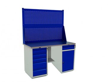 Высота рабочей поверхности — 870 мм Ширина столешницы — 1400 мм Глубина столешницы — 700 мм Кол-во полок — 2 Кол-во ящиков — 6 Макс. нагрузка — 1000 кг Вес — 91 кг Цена указана за верстак с экраном и освещением Цену можно снизить, выбрав комплект без аксессуаров None Возможен самовывоз. Есть доставка.