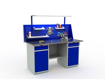 Высота рабочей поверхности — 870 мм Ширина столешницы — 1600 мм Глубина столешницы — 700 мм Кол-во полок — 4 Кол-во ящиков — 2 Макс. нагрузка — 1000 кг Вес — 87 кг Цена указана за верстак с экраном и освещением Цену можно снизить, выбрав комплект без аксессуаров None Возможен самовывоз. Есть доставка.