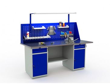 Высота рабочей поверхности — 870 мм Ширина столешницы — 1800 мм Глубина столешницы — 700 мм Кол-во полок — 4 Кол-во ящиков — 2 Макс. нагрузка — 1000 кг Вес — 91 кг Цена указана за верстак с экраном и освещением Цену можно снизить, выбрав комплект без аксессуаров None Возможен самовывоз. Есть доставка.