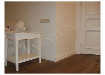 При создании модных контрастных интерьеров белый плинтус может использоваться как одна из основных деталей - белый цвет плинтуса составляет эффектный контраст при любом оттенке стен. Если для напольного покрытия использовалась светлая паркетная доска или доска из массива дуб беленый, напольный белый плинтус гармонично подчеркнет интерьер. Классический белый плинтус - высококачественный экологически чистый продукт, изготовлен из массива хвойных пород, имеет белое ровное лаковое покрытие. Особой популярностью пользуется высокий белый плинтус 15х95мм. Белый плинтус цена: от290 до 277 рублей за м.п. Напольный белый плинтус Педрос покрыт лаком. Лак не содержит тяжелых металлов и формальдегидов, поэтому белый плинтус Pedross можно использовать в детских комнатах. Сайт ООО Авэнти www.aventi.ru Мы в центре. г.Москва, 5 минут пешком от м. Маяковская! Звоните 8(499) 250-08-07, 250-07-73, 250-86-13, 250-55-37