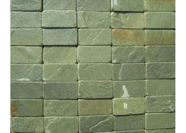 Брусчатка из природного камня Златолит серебристо-зелёный, галтованная.