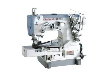 Плоскошовная 3-игольная 5-ниточнаямашина с рукавной платформой и с выемкой под окантователь. Верхний и нижний раскладчик нити. Серия 600-2 используется для окантовки и имеет специальную выемку для установки окантователя. Незаменима при окантовки изделий с узким радиусом. Технические характеристики: Количество игл 3 Количество ниток 5 Расстояние между иглами 5.6 мм (стандарт) Дифференциал 0,5 1,3 мм Длина стежка 1,2 4,4 мм Подъем лапки 6 мм Скорость 6000 об/мин