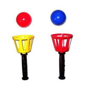 В комплект игры входят 2 конусообразные корзины и 2 мячика